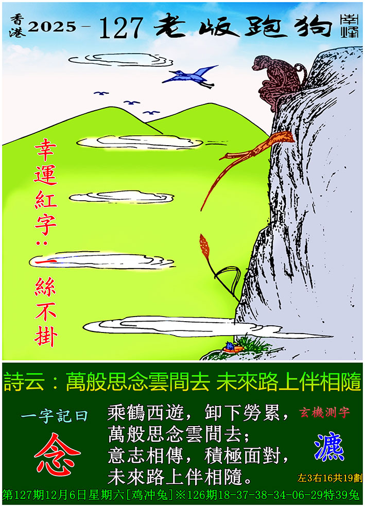 127期老版跑狗一字記之曰:【念】 玄機測字:《瀌》