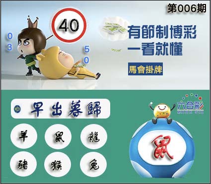 006期正版彩图挂:40 爆:鼠 挂牌成语:早出暮归 挂牌出肖:羊鼠龙猪猴兔