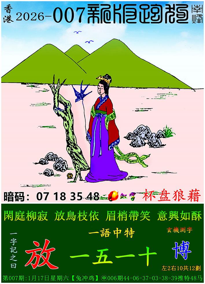007期新版跑狗一字記之曰:【放】 玄機測字:《博》
