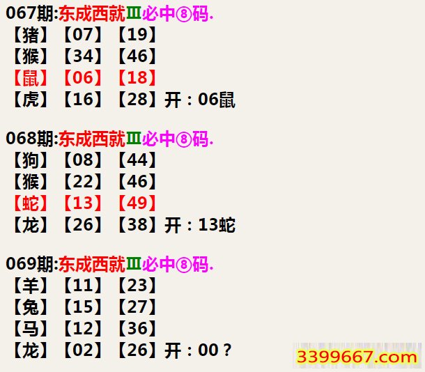 069期:东成西就Ⅲ必中⑧码