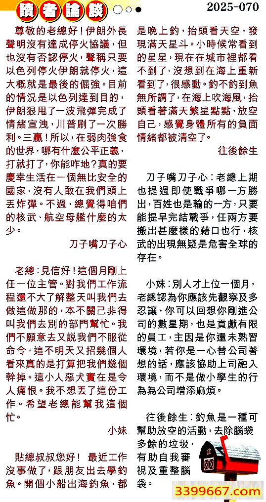 第零七零期讀者論談