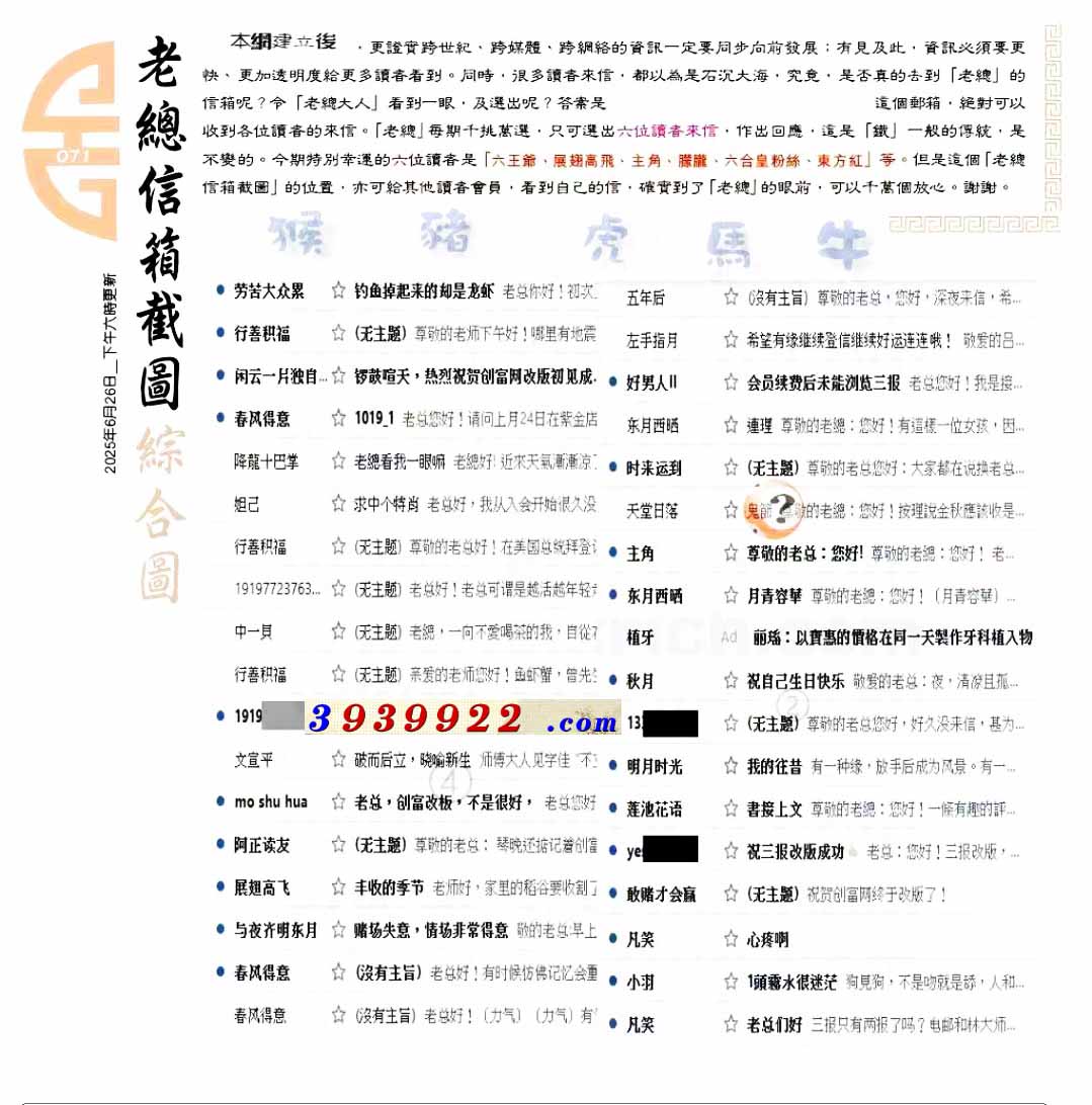 071期:六合皇金句/老总论码/萧公子/林大师/五行夺码/老总信箱截