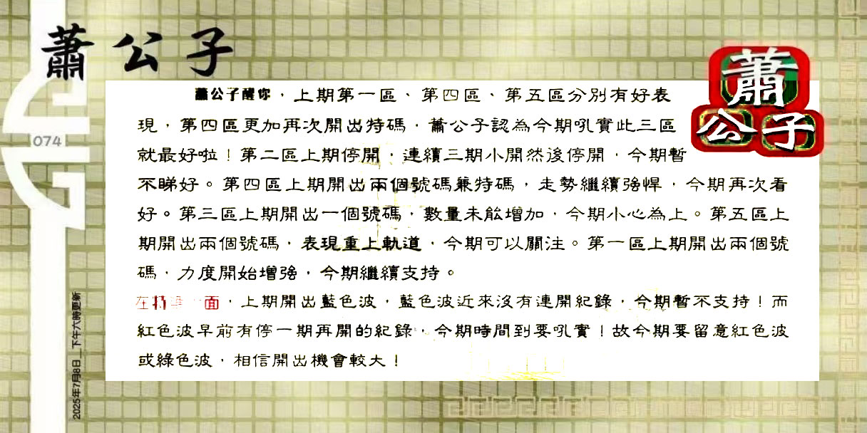 074期:六合皇金句/老总论码/萧公子/林大师/五行夺码/老总信箱截