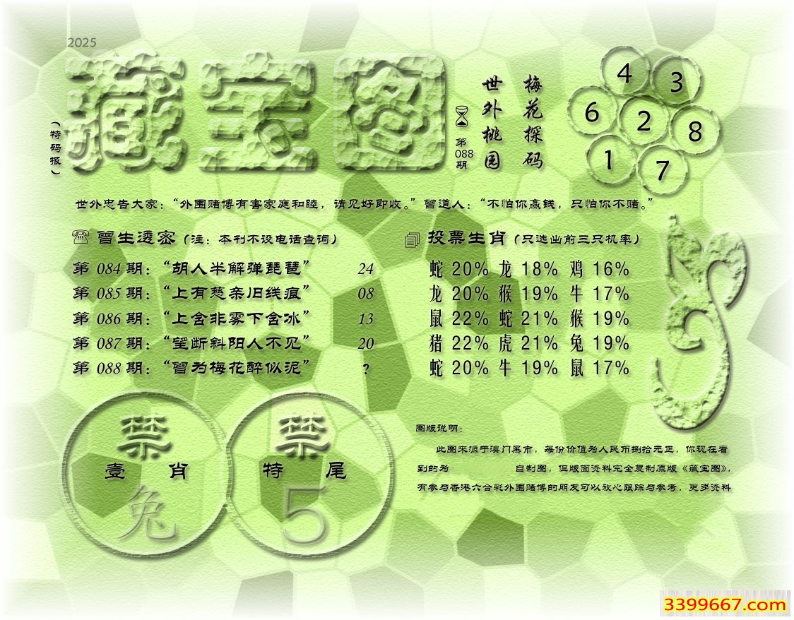 088期藏寶圖 新:未应牵入耆英社 老:曾为梅花醉似泥 禁:兔 禁:5