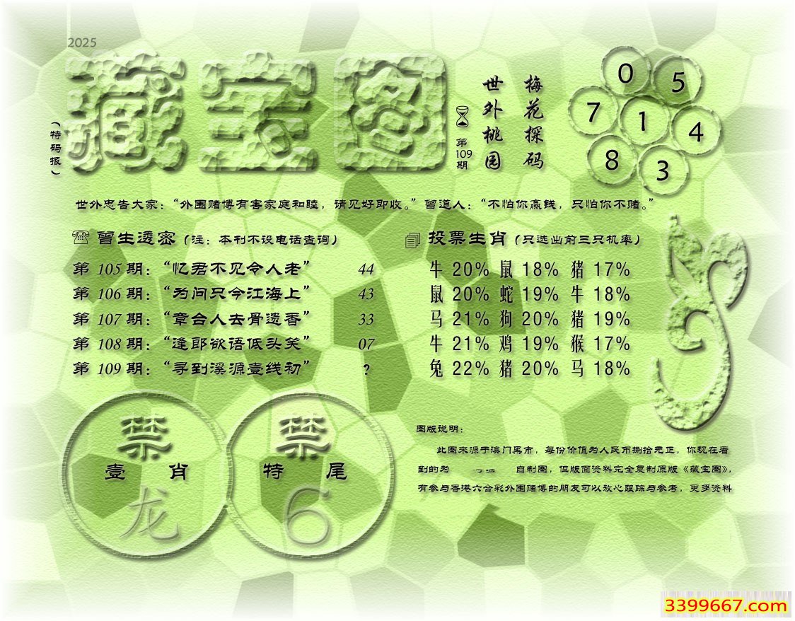 109期藏寶圖 新:清坐闲披贝叶文 老:寻到溪源壹线初 禁:龙 禁:6尾