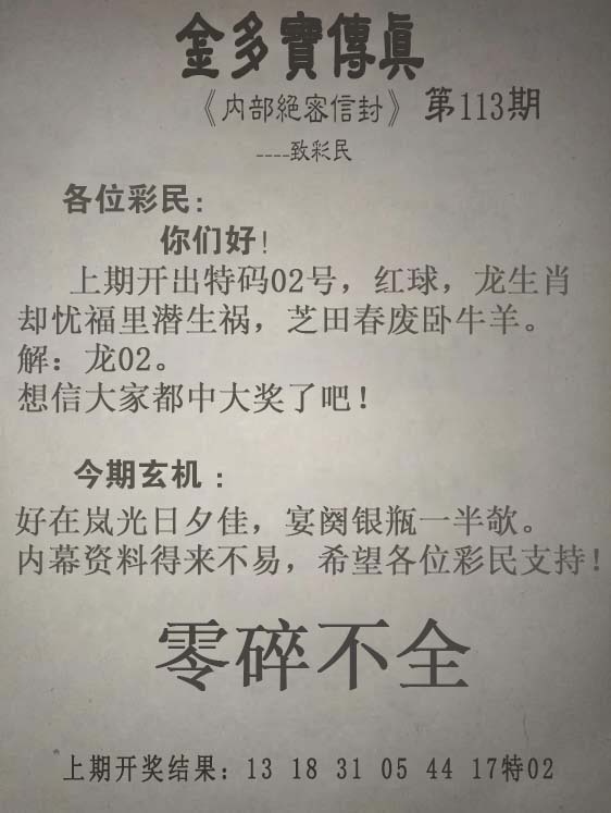 113期:另版【金多寶傳真】