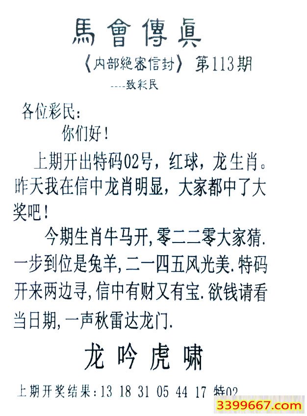 113期:首发推荐:≮馬會傳眞≯→(香港正版)