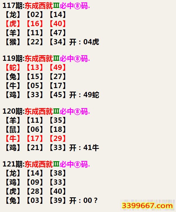 121期:东成西就Ⅲ必中⑧码