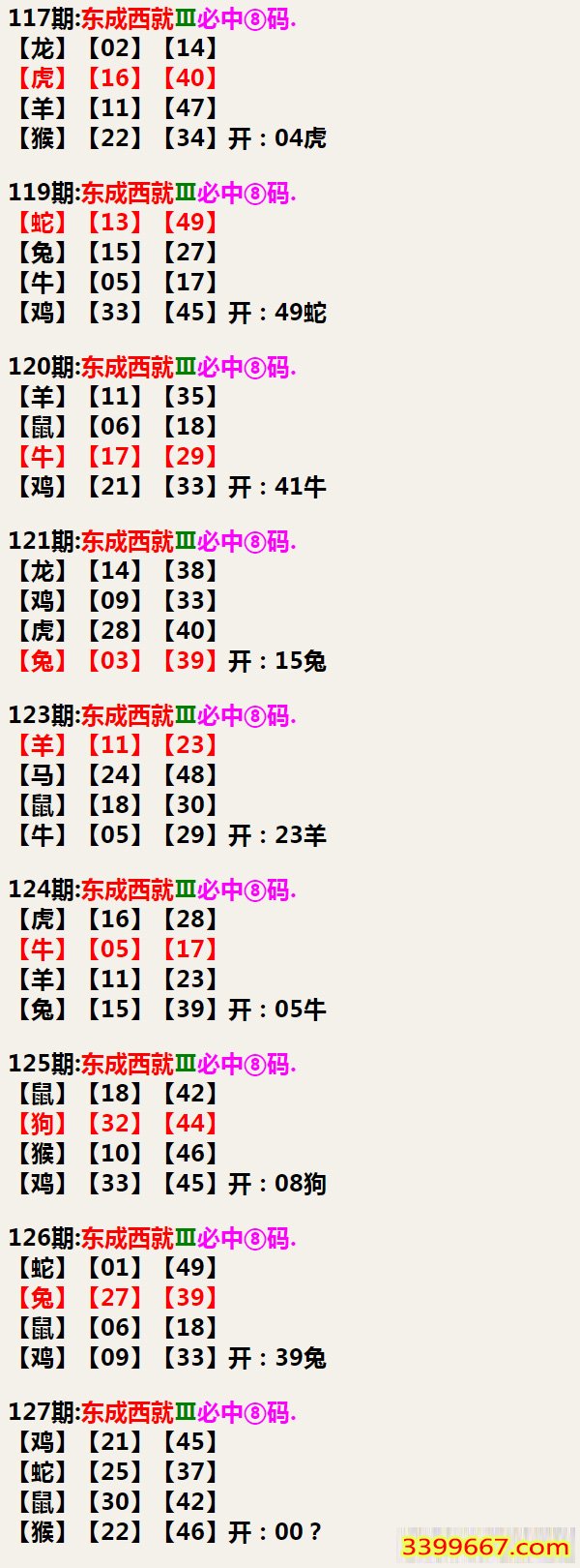 127期:东成西就Ⅲ必中⑧码