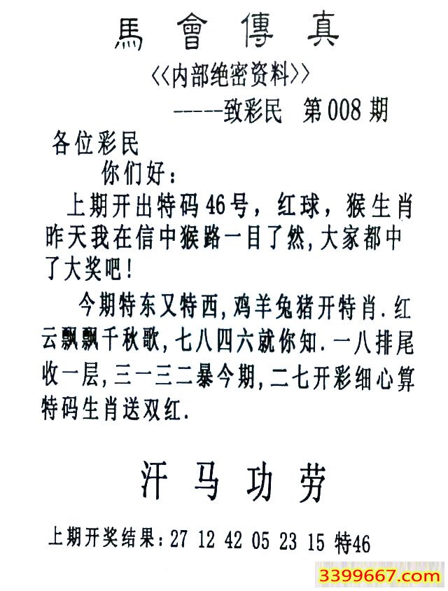 008期:首发推荐:≮馬會傳眞≯→(香港正版)