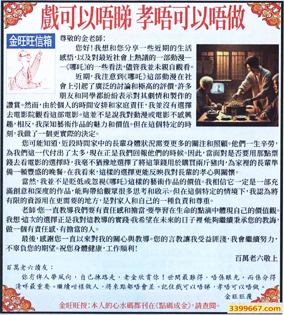 011期:金旺旺信箱彩民推荐→→《戲可以唔睇 孝唔可以唔做》